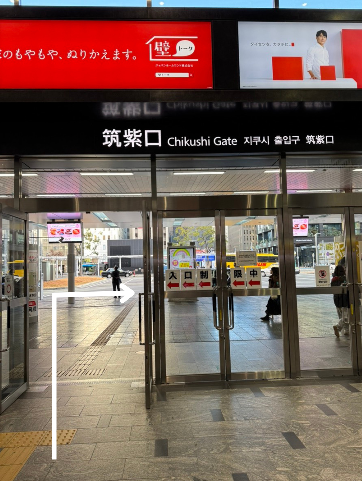 JR博多駅 筑紫口を出て右に曲がりロータリーに沿って進みます。